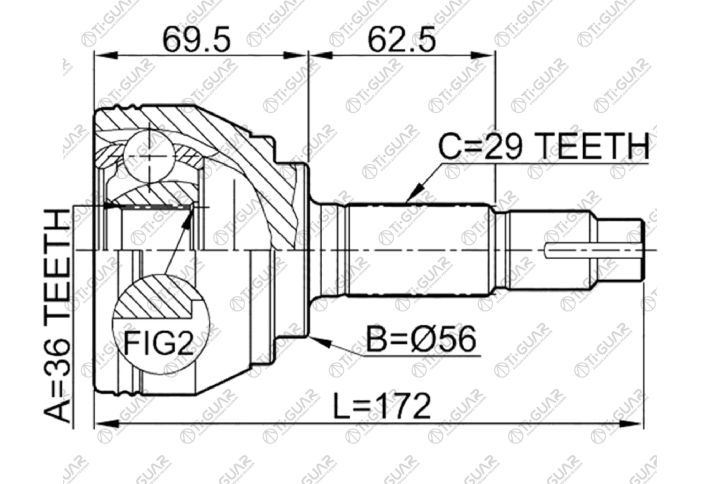 ШРУС наружный /TI-GUAR для NISSAN MURANO PZ50 VQ35DE 2004- /36*56*29; TG-7475; 0210075 320170 39100CA000 39100CA001 NI075